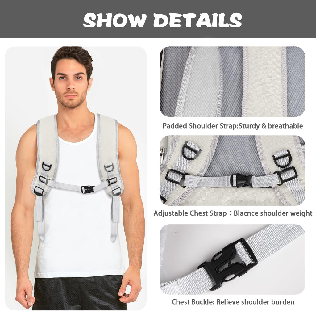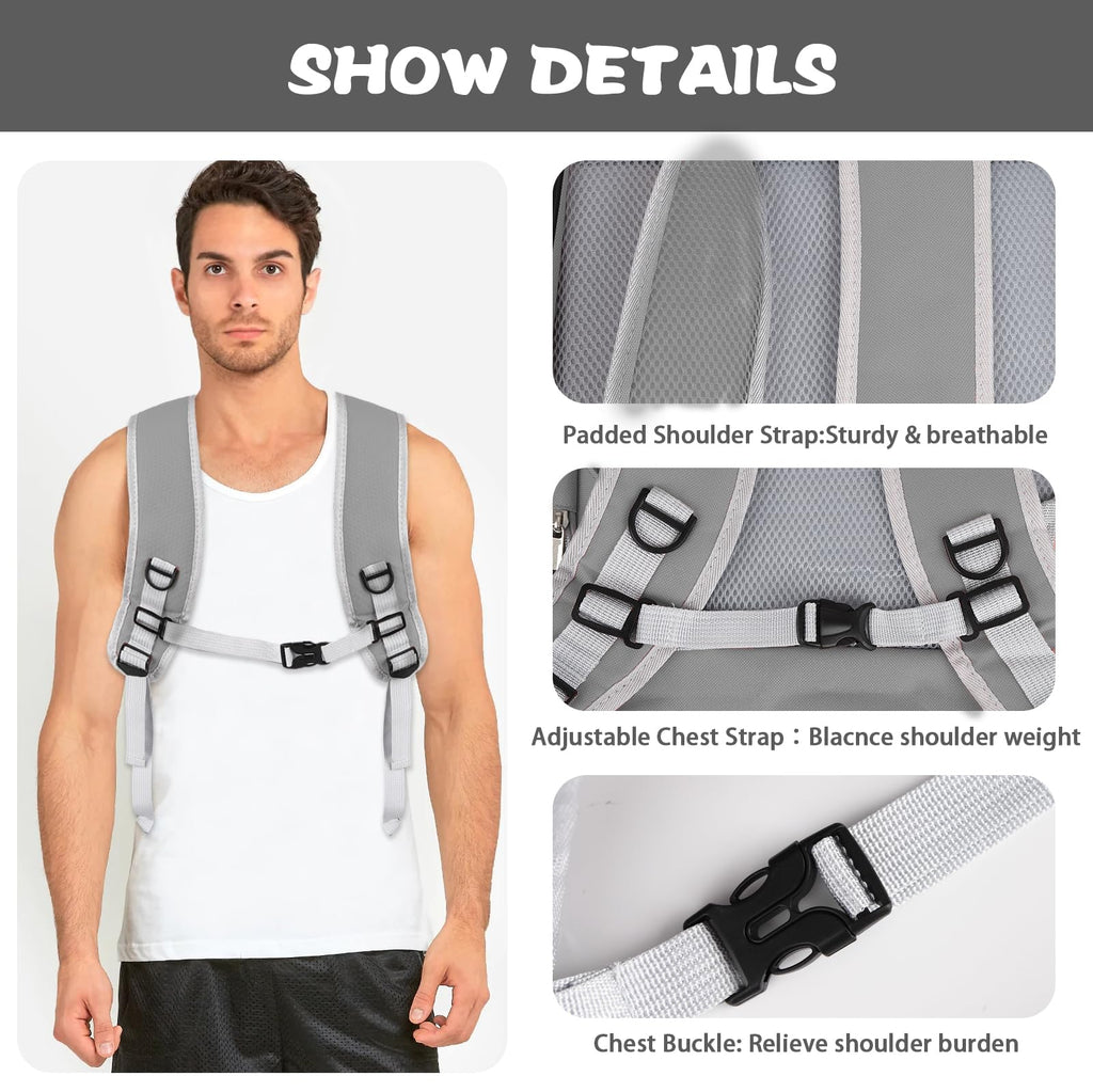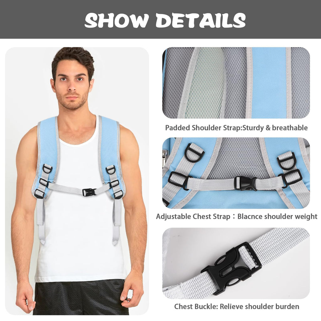Equipped with breathable honeycomb sponge padding on the back and wide, padded shoulder straps, this backpack ensures maximum comfort for the wearer. Adjustable chest and waist buckles prevent shoulder strap slippage and maintain stability, even during longer trips.