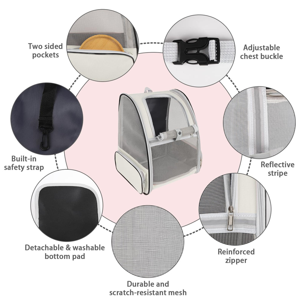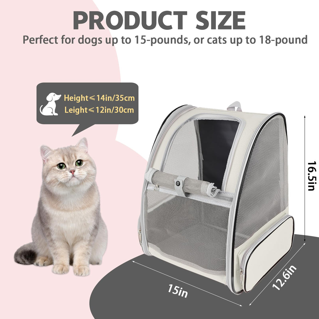 The ZYHOAOE Pet Backpack Carrier measures 15’’ L x 12.6’’ W x 16.5’’ H, making it ideal for dogs up to 15 pounds or cats up to 18 pounds. Its roomy interior allows pets to sit, move, and relax comfortably while traveling, hiking, walking, or cycling, ensuring you and your furry friend can enjoy every adventure together.