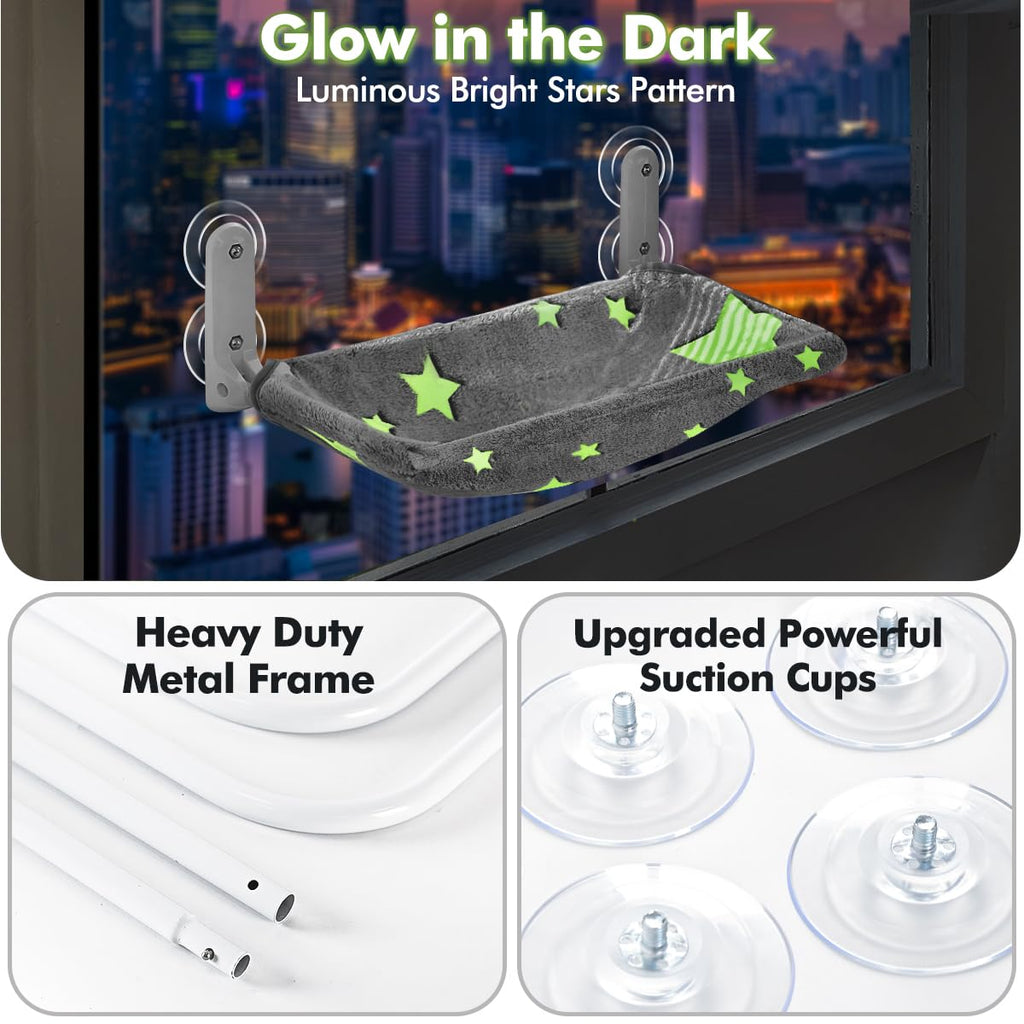 The Zoratoo cat window perch features glow-in-the-dark fabric that adds a touch of magic to your home. Simply expose it to bright light or sunlight for 15 to 20 minutes, and the fabric will emit a soft glow in the dark. At night, you can even see your cat resting comfortably on its perch, creating a mysterious and interesting visual effect.